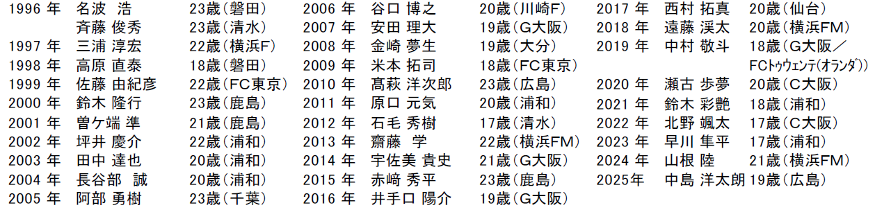 ※年齢は受賞年の初戦試合日時点、()内は当時所属チーム