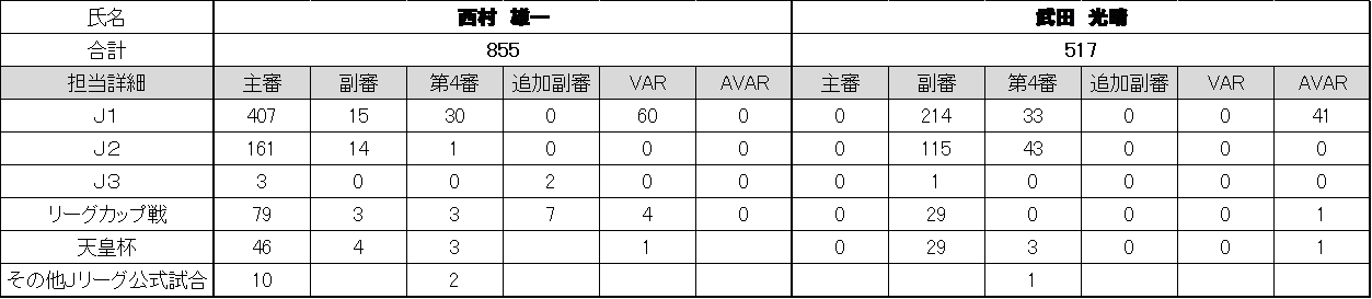 ※出場試合数は、主審/副審/第4審/追加副審/VAR/AVARの合計
