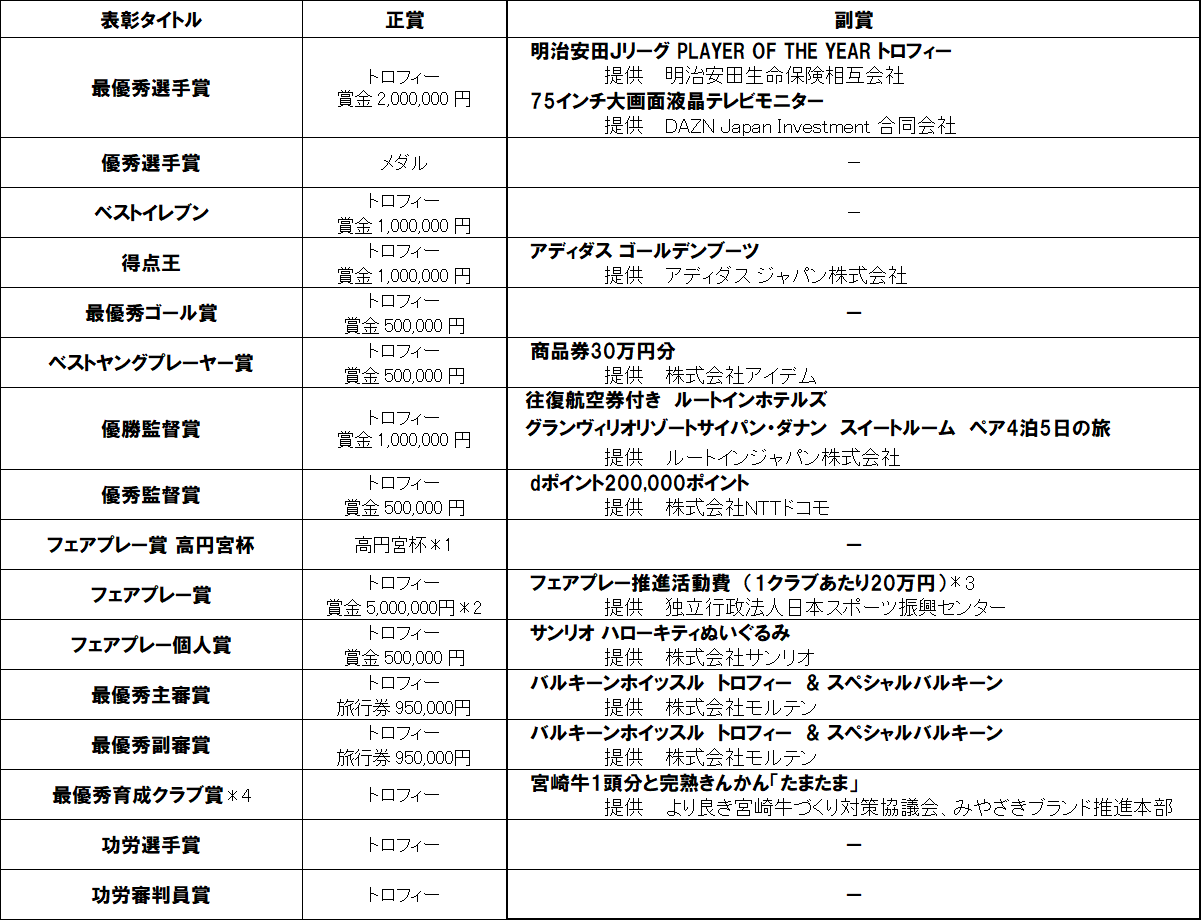 *4:最優秀育成クラブ賞は、カテゴリーを問わず選出する。受賞クラブの発表はJリーグアウォーズ開催日以降を予定。