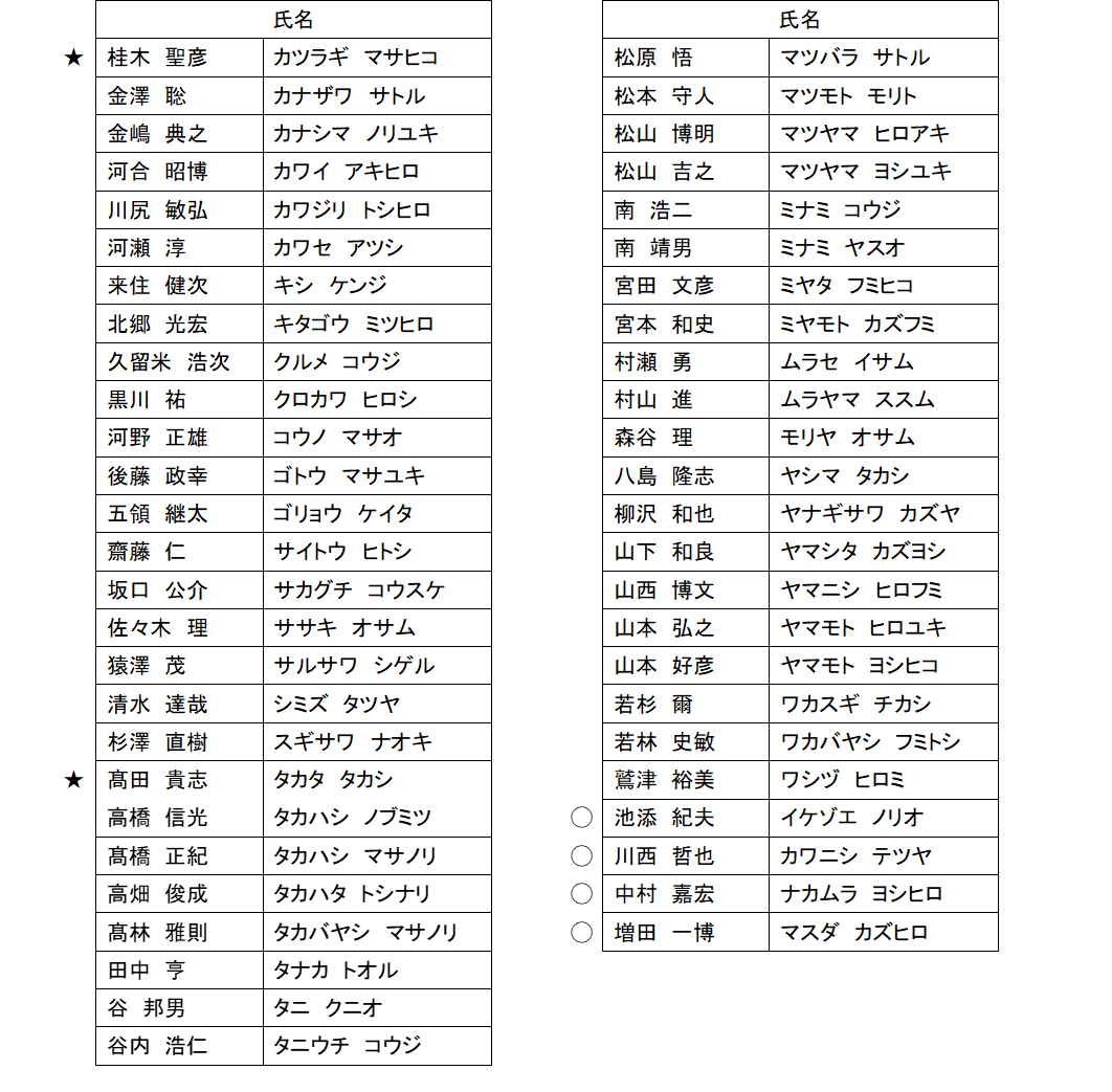 ★:Jリーグマッチコミッショナー委員会 委員◯:新任マッチコミッショナー
