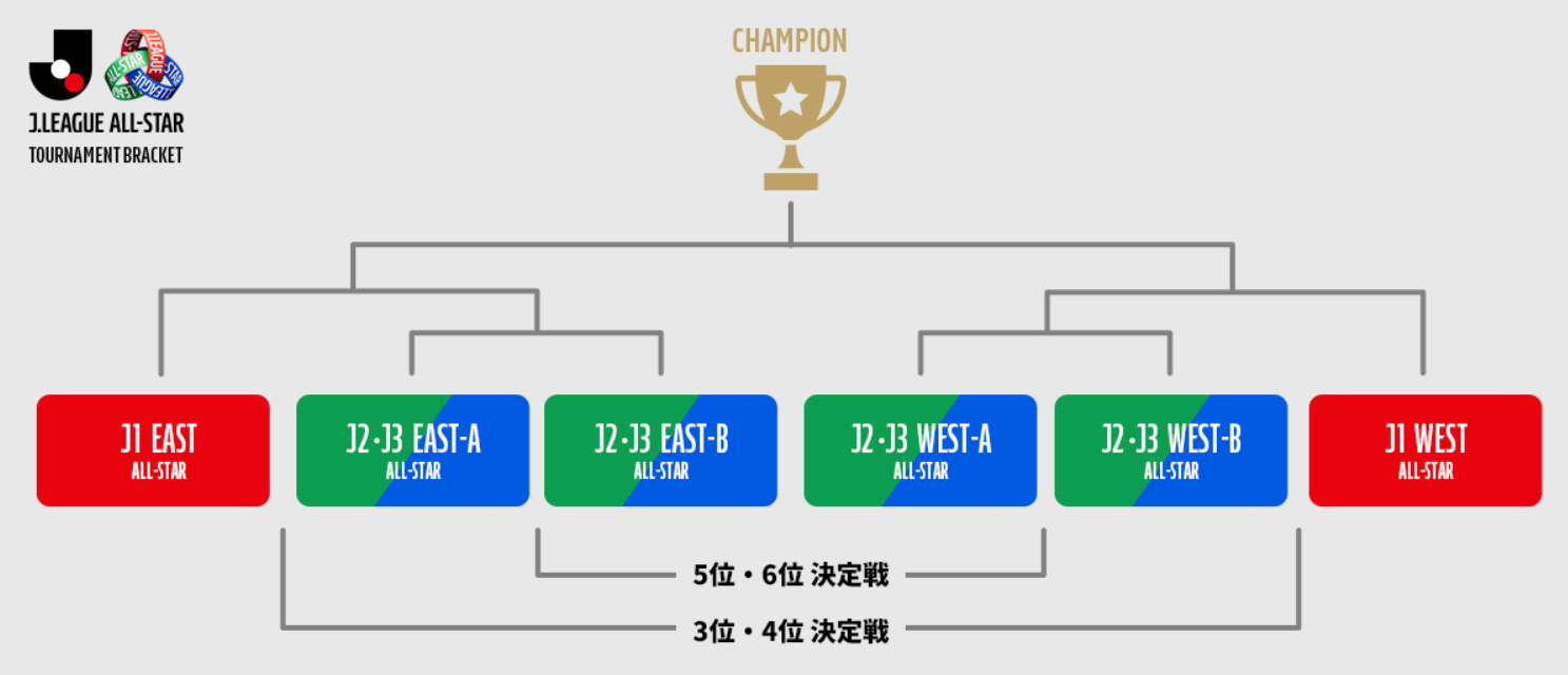 大会方式 | ・明治安田Jリーグ百年構想リーグの6つの地域グループごとに構成されたオールスターチームによる1DAYトーナメント方式を実施(全7試合) ・1試合30分(前後半なし) ※3位・5位決定戦は20分(前後半なし) |