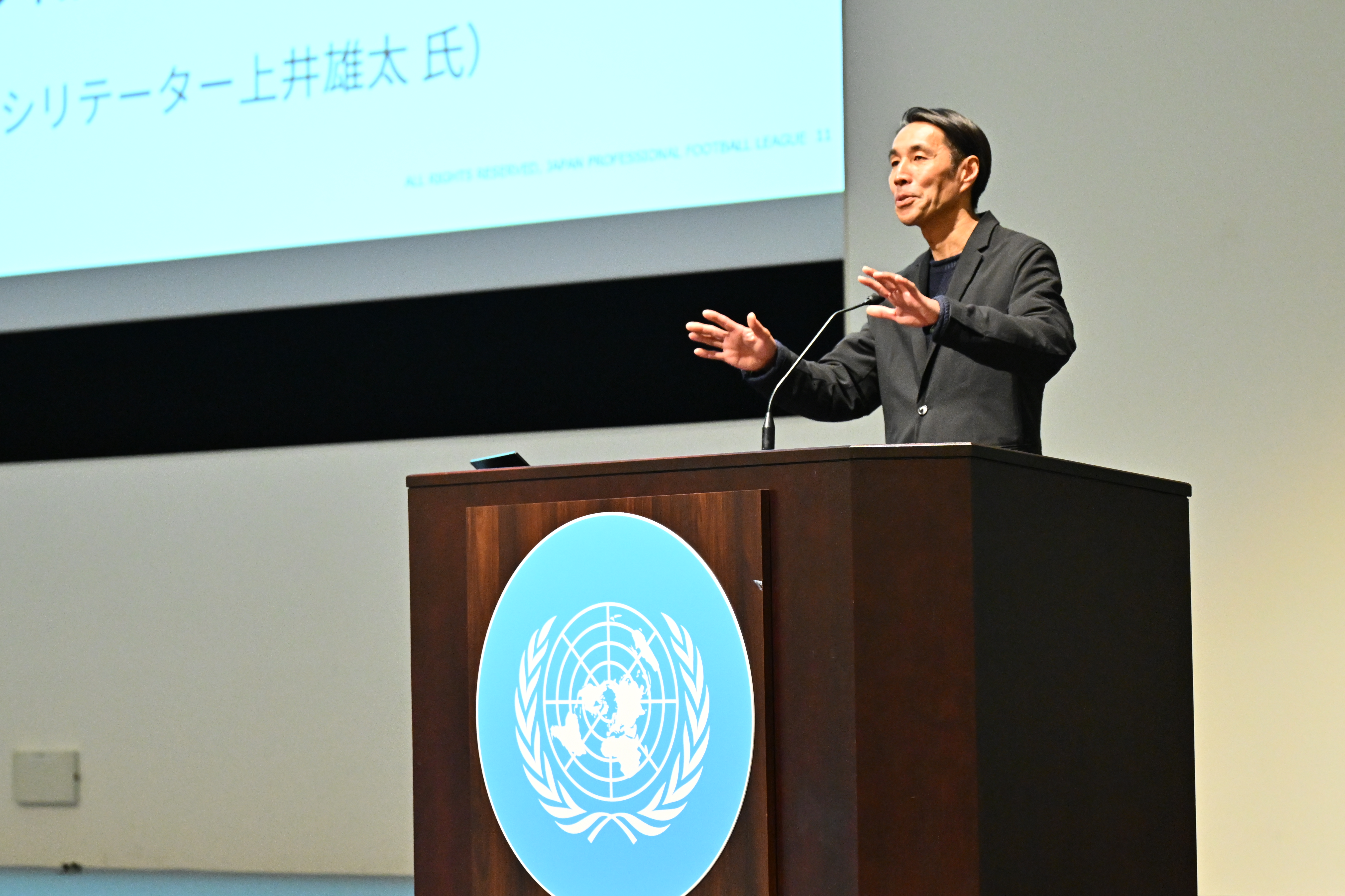 野々村は、「昨今の気候変動の影響を受けて、Jリーグの試合を行うことはもちろんのこと、子どもたちがプレーをすることが難しい環境になってきている。サッカーは世界中で大きなネットワークを持っているスポーツであるため、そのネットワークを通じて1人でも多くの人の意識や行動が変わることで、社会を動かしていく大きな力にもなっていくのではと感じている。『必要性は分かっているし何か行動をしたいが、何からやればいいのか分からない』という声をいただくことがあるため、今日のこの場が少しでも具体的な行動がしやすくなるきっかけになれば」と語りました。