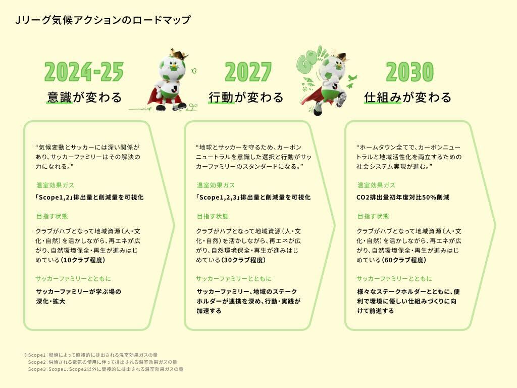 Jリーグは、サステナビリティの活動領域をPEOPLE(インクルーシブな社会へ)、PLANET(気候アクション)、COMMUNITY(地域コミュニティの醸成)の3つと定義していますが、昨今の気候変動による温暖化や災害の激甚化を受けて、次世代にスポーツができる環境をつないでいくことが喫緊の課題であると、2023年に気候アクショングループを立ち上げ。ロードマップを策定し、各種気候アクションを推進してきました。