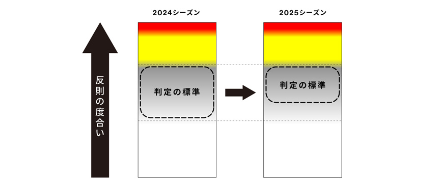 - 1.判定の標準を上げる(ファウルの解釈の幅を、世界トップの標準に近づけていく)