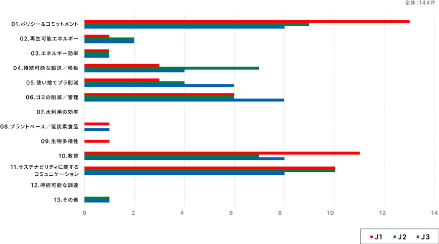 Jクラブが実施する気候アクションであり、SPLにおいて評価カテゴリーとして定義されている、12のカテゴリーに関する事業