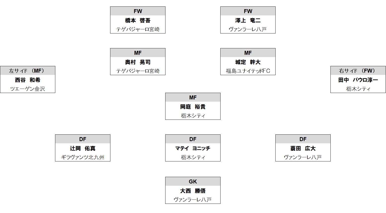 ベストイレブン(J3) | GK | 大西 勝俉 | ヴァンラーレ八戸 | 初 |