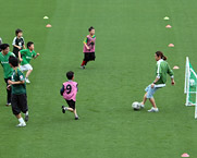 時折小雨がぱらつくあいにくのお天気で行われたファミリーJoinデイズでしたが、ピッチでは『親子でサッカー教室』が、曇り空を吹き飛ばすような参加者の笑顔と元気に包まれながら始まりました。イベントにはJリーグ百年構想メッセンジャーの城彰二さんとMr.ピッチも参加。城さんは子ども達と一緒にサッカーを楽しみ、大粒の汗を流していました。子ども達は初めて立つあこがれの国立に、参加した大興奮。「楽しい!」「(国立は)すごく広いね!!」と夢中になってボールを追いかけ、思いっきり聖地の空気を感じたようでした。