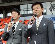 サッカー教室を終えると、控え室で東京ヴェルディOBの武田修宏さんと横浜F・マリノスOBの城さんによる、子ども達への見所講座が待っていました。
