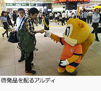 6月2日(月)大宮駅で行われた「痴漢犯罪防止キャンペーン出発式」にクラブマスコットのアルディが参加しましたのでその模様をお伝えいたします。 このキャンペーンには、埼玉県警察本部地域部鉄道警察隊をはじめ、大宮駅で運行している鉄道会社や高校生など約170名の方々が参加し痴漢犯罪防止の広報啓発品を配布しPR活動を実施いたしました。